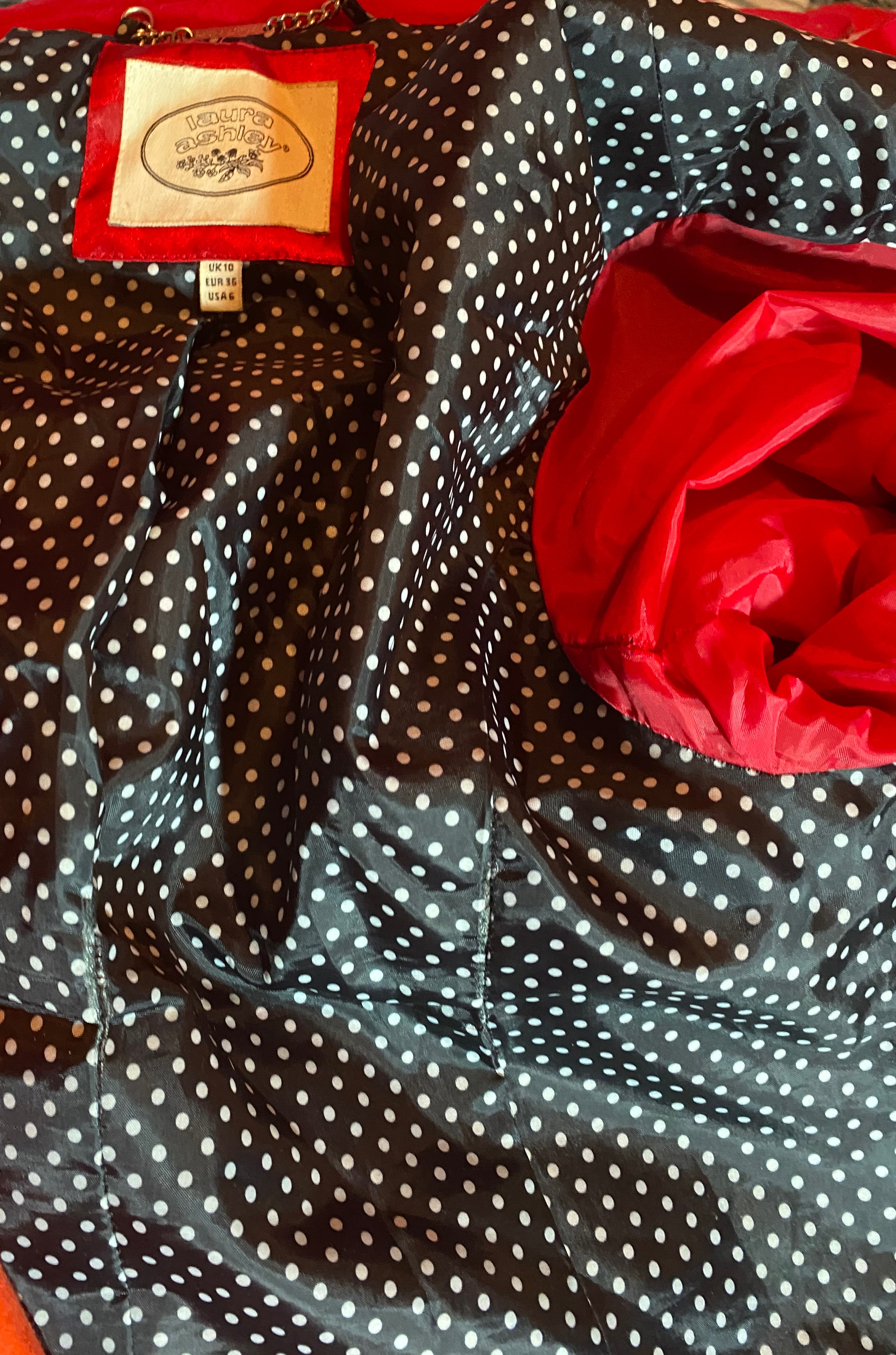 Just finished all over this polka dot lining on this lovely Laura Ashley coat.