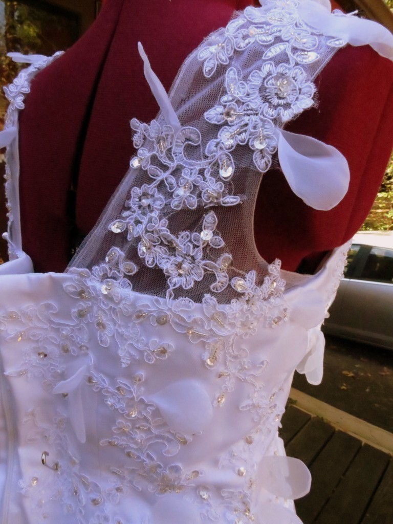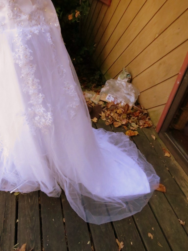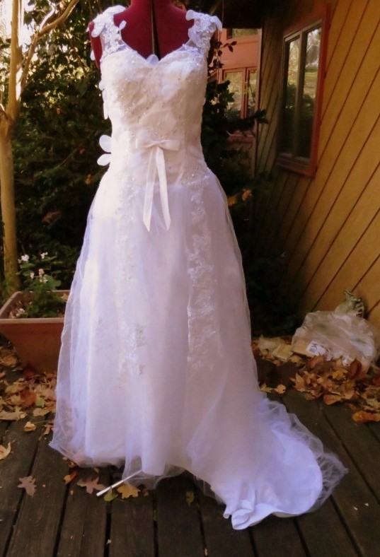 This dress should be arriving next week. It was listed as a never worn, custom made, tafetta wedding dress. I don't think it's gonna stay a virgin white for very long !!!