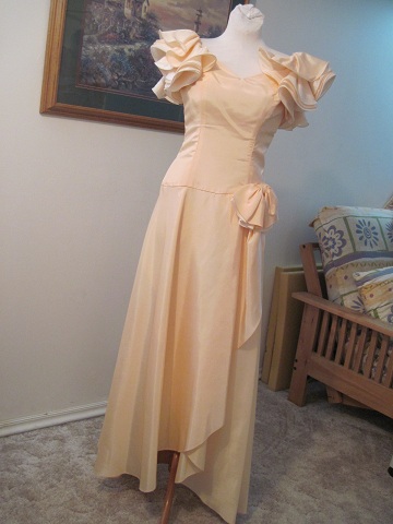 This peach "vintage bridesmaids/prom" dress I got for $20.00. It's kind of an ugly dress, but cum should show up on it real good !!