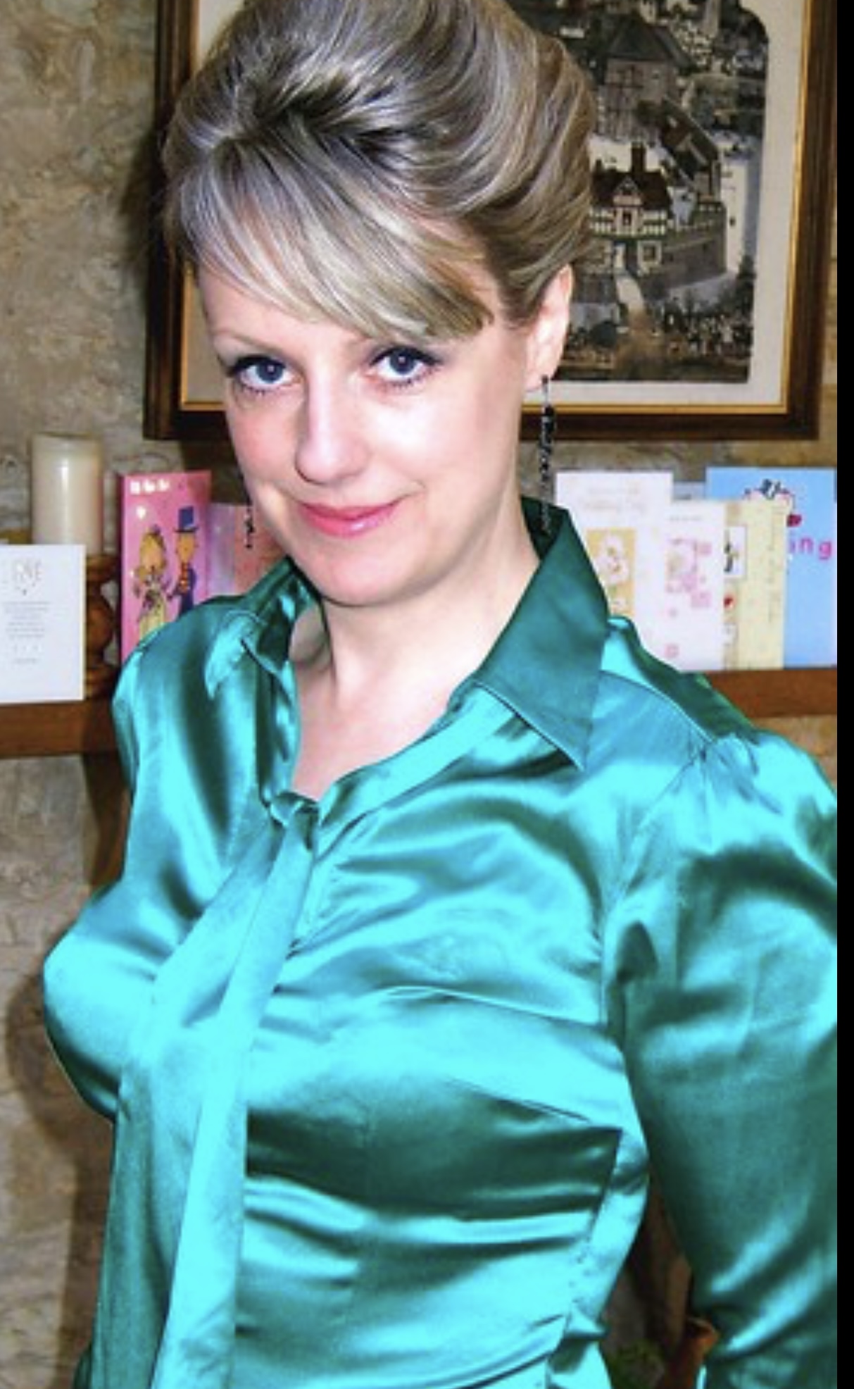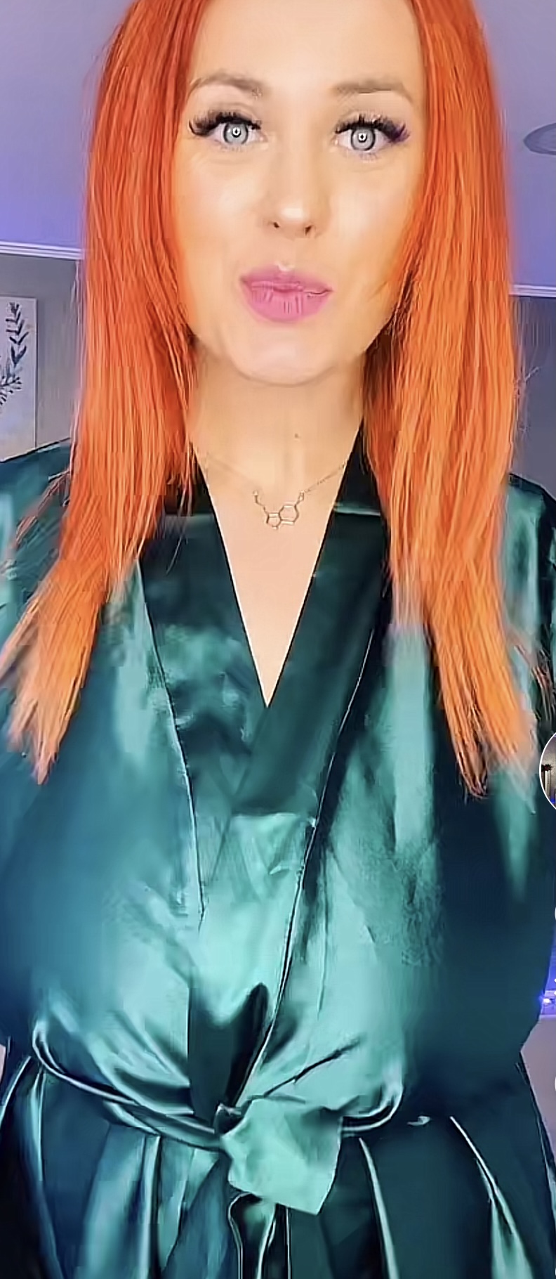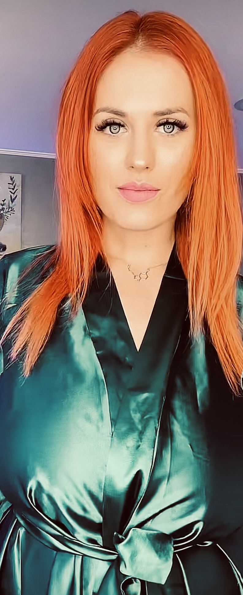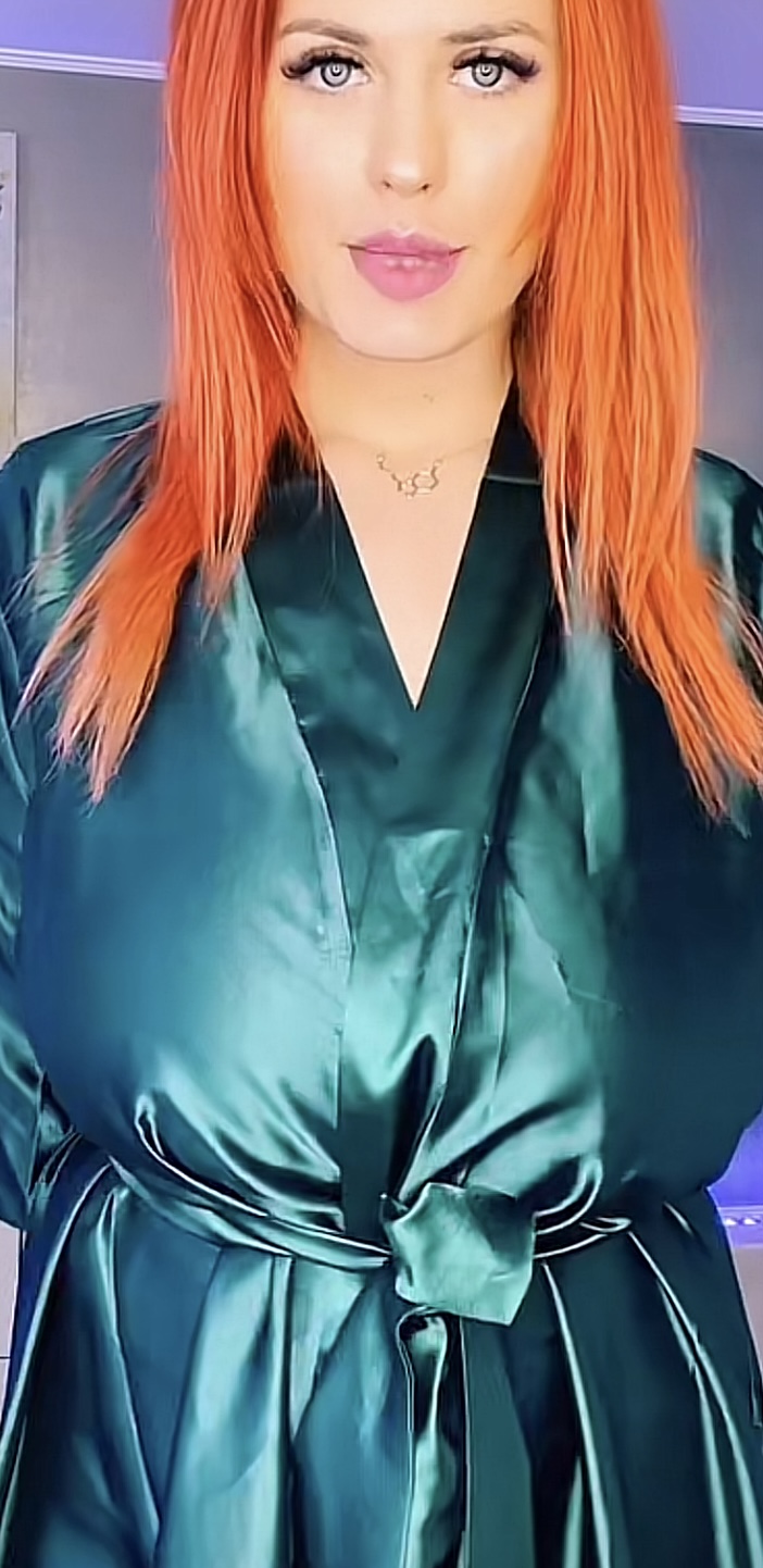 Ginger haired babe in satin