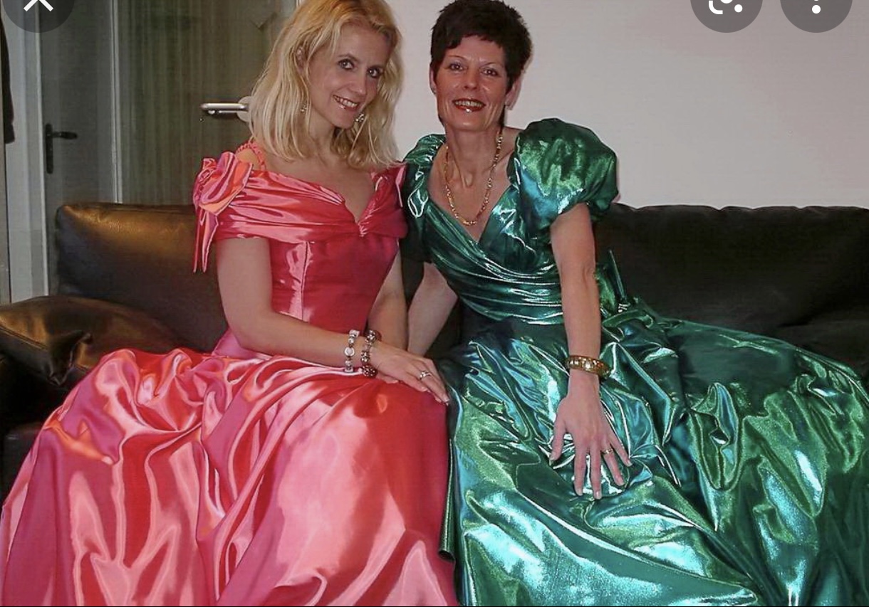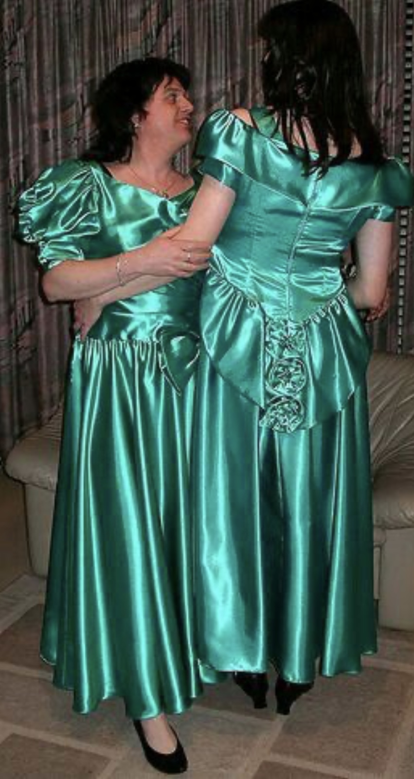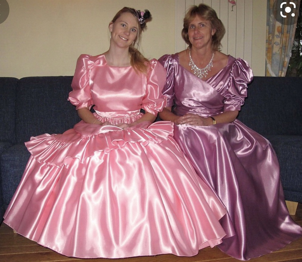 2 dressed in shiny satin