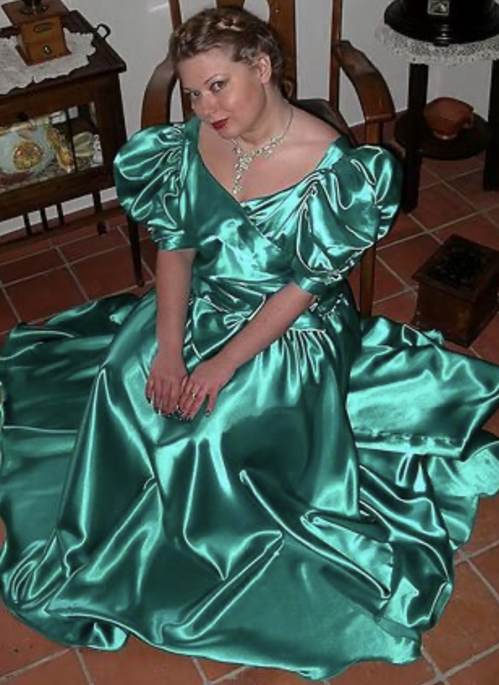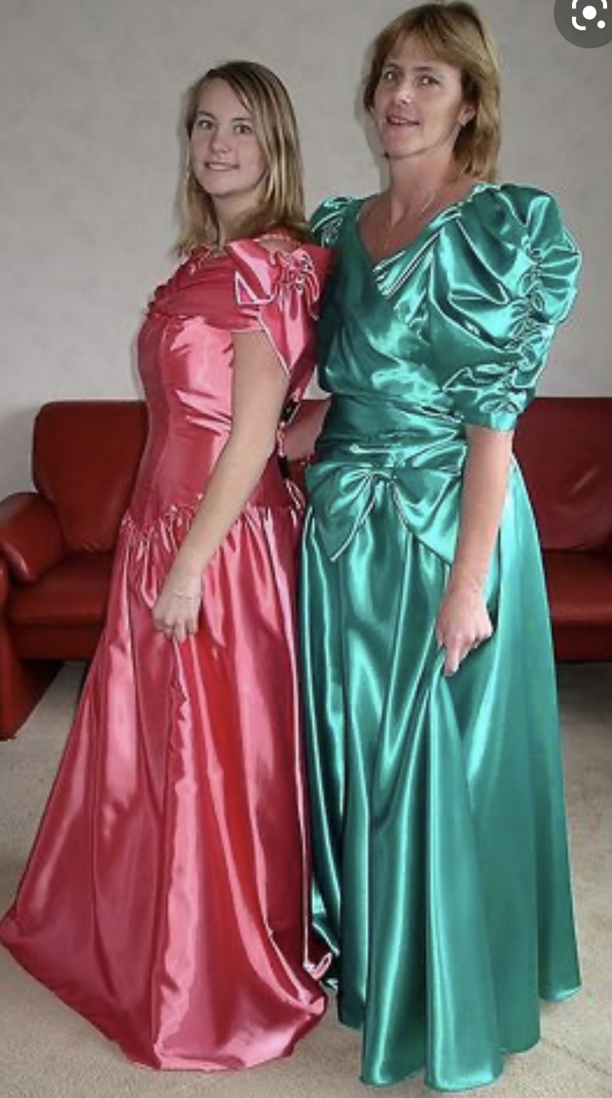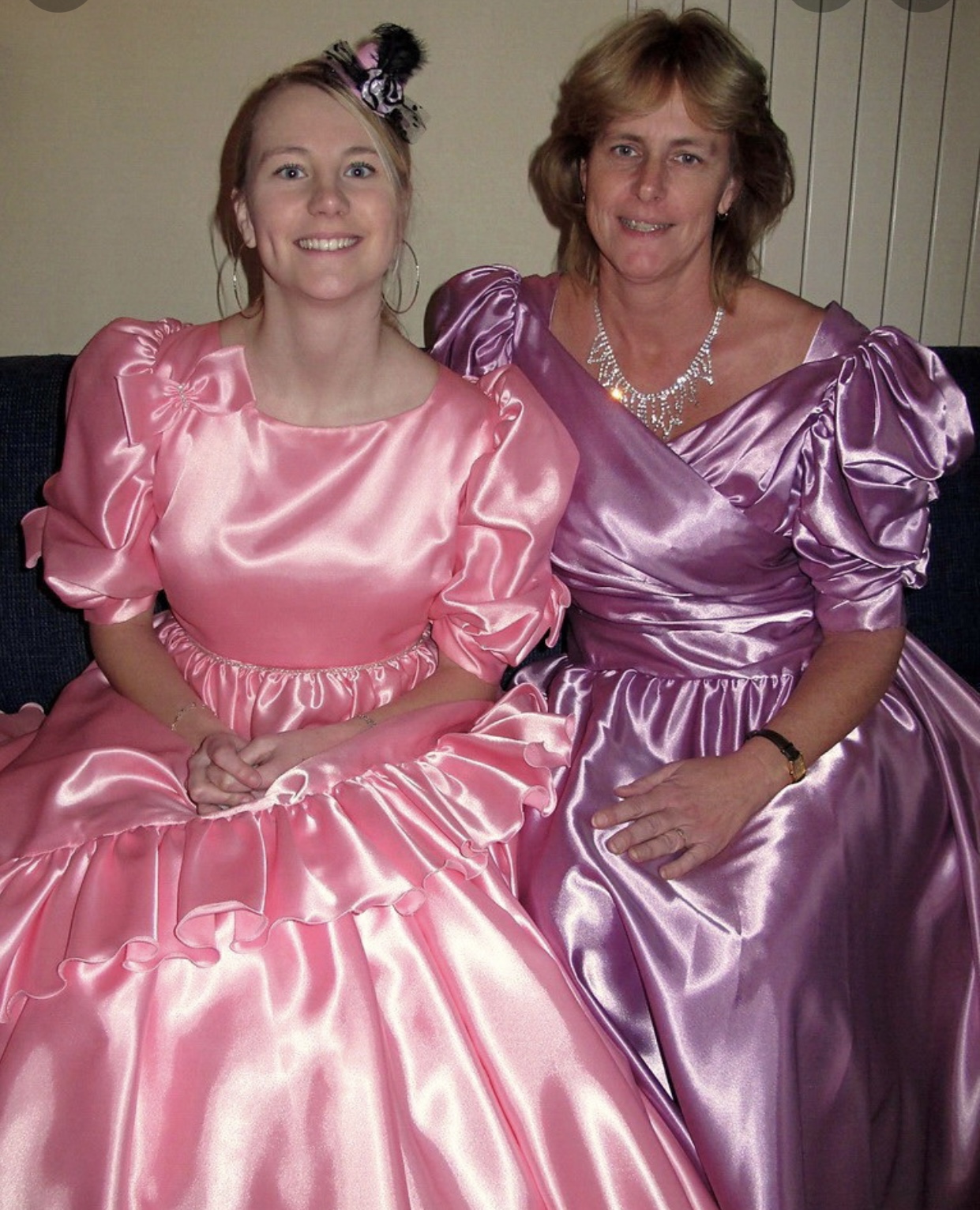 2 dressed in shiny satin