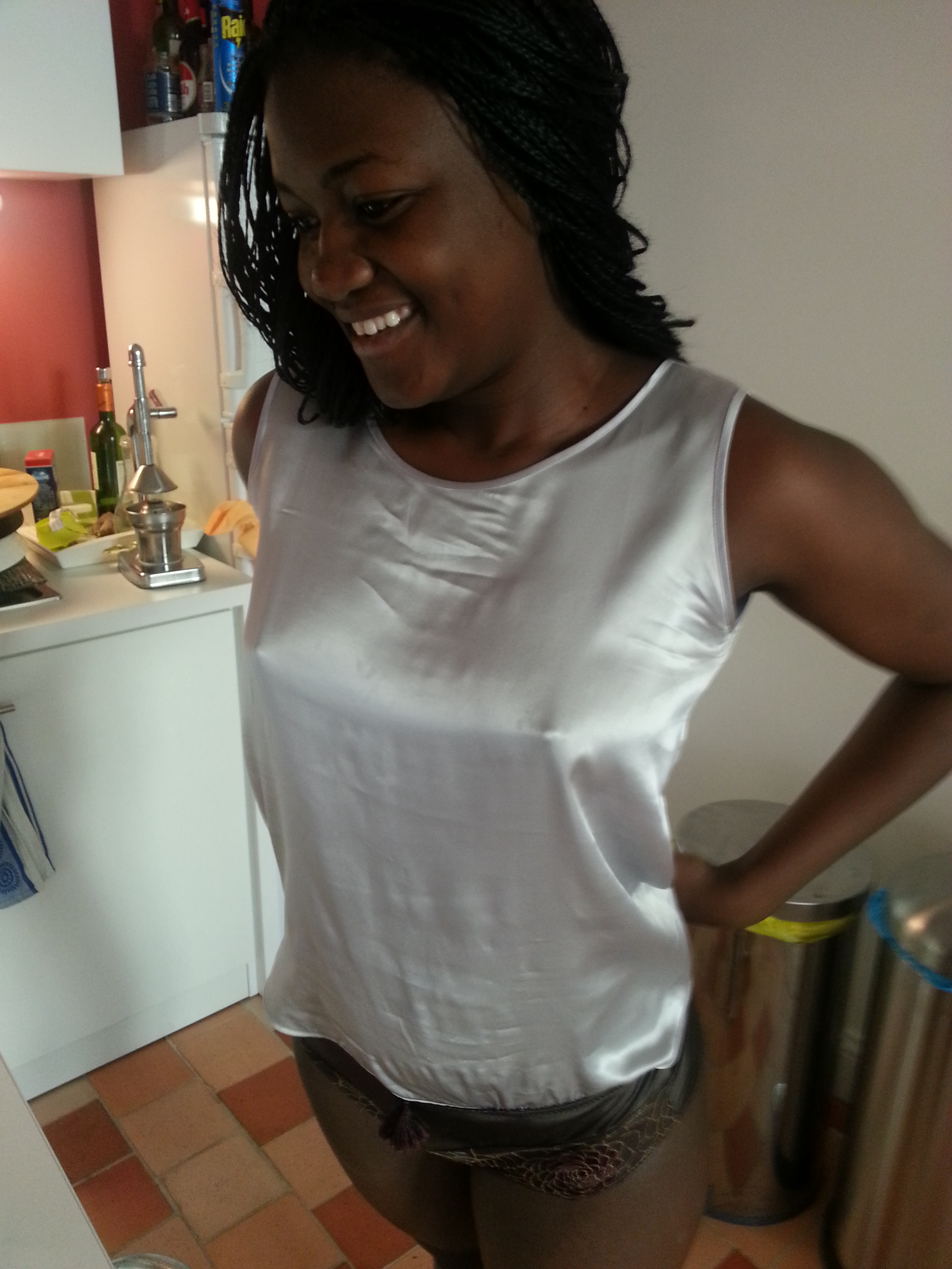 That chocolate brown skin beckons a good cocking, even better when she's shrouded in delicate satin all up and down her naked curvy body.