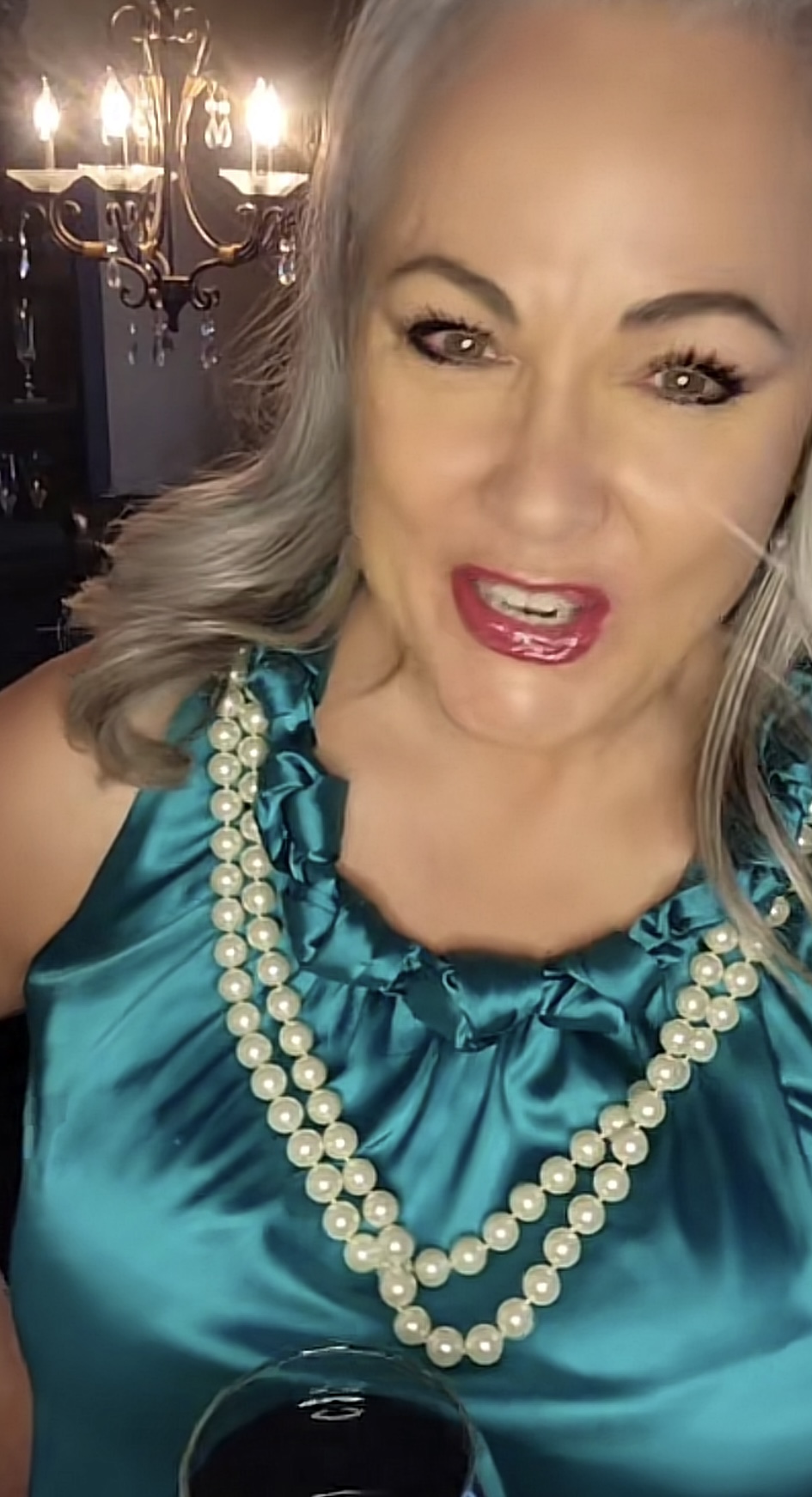 Blue satin dressed babe