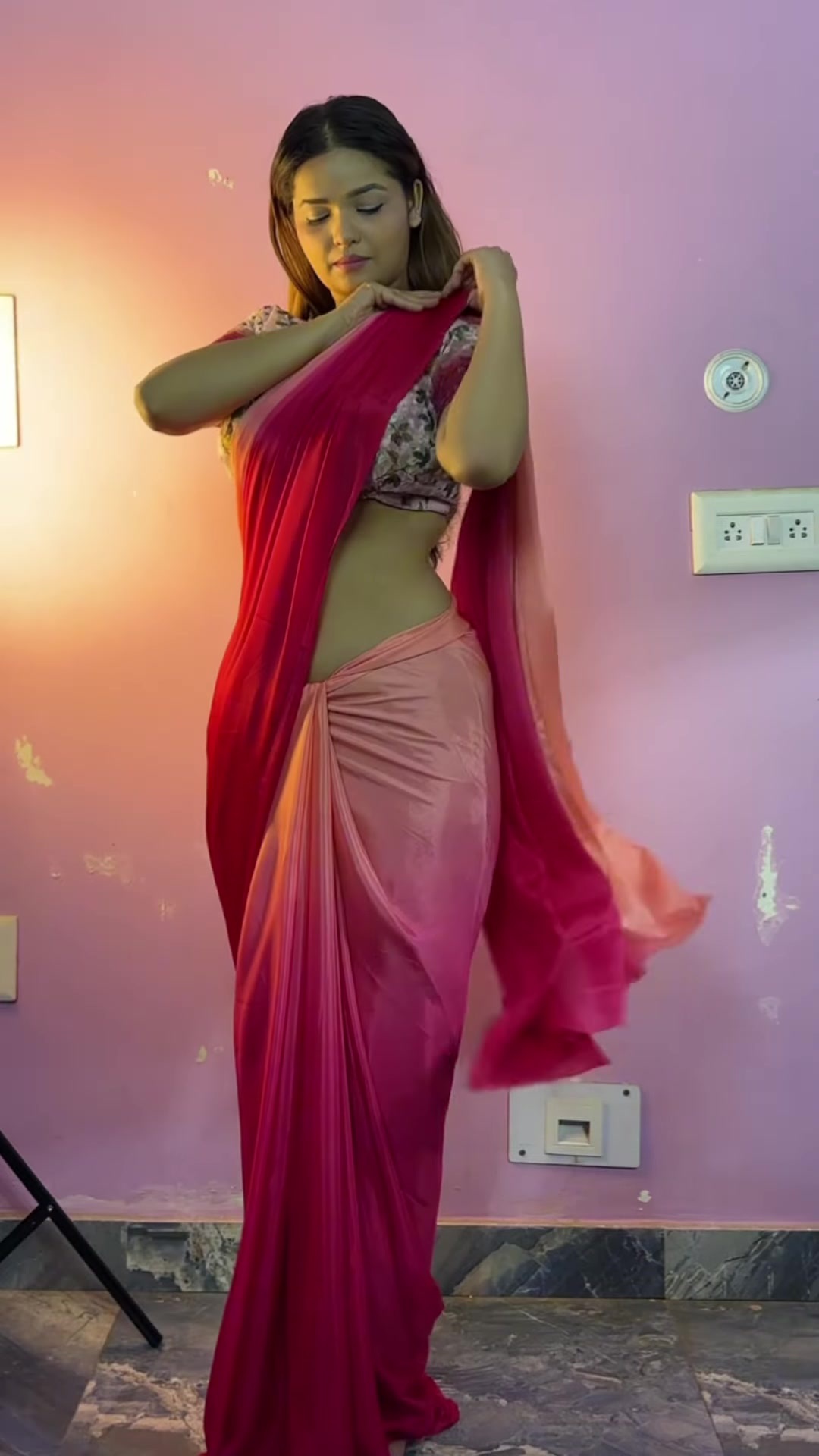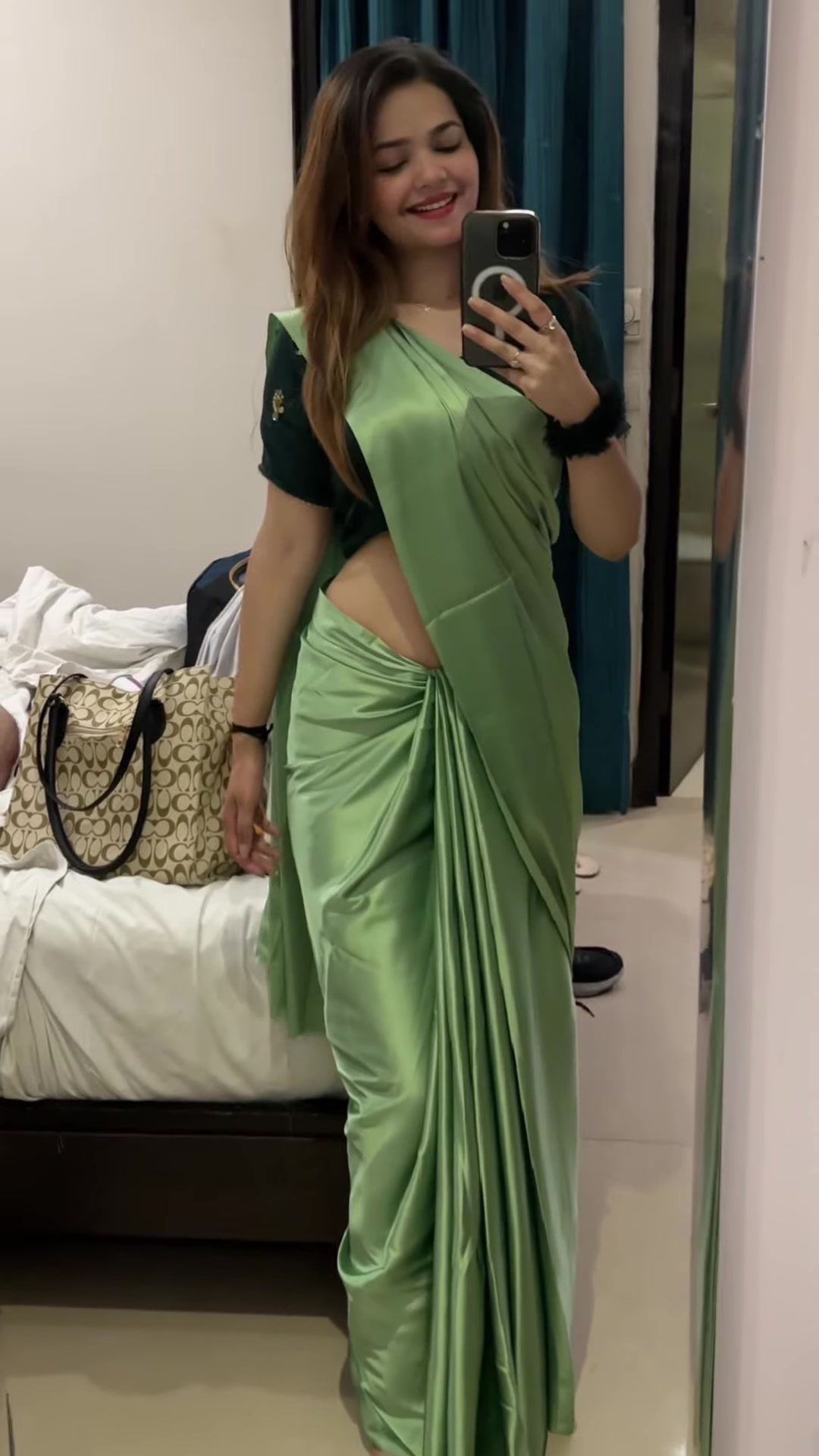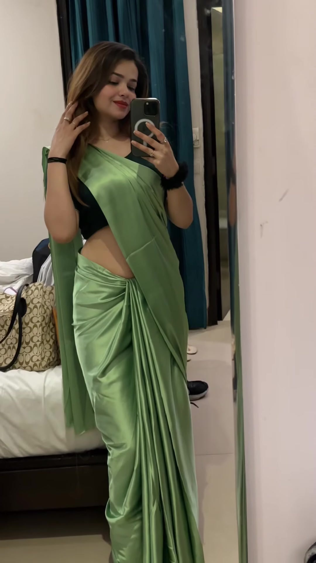 yellow satin saree