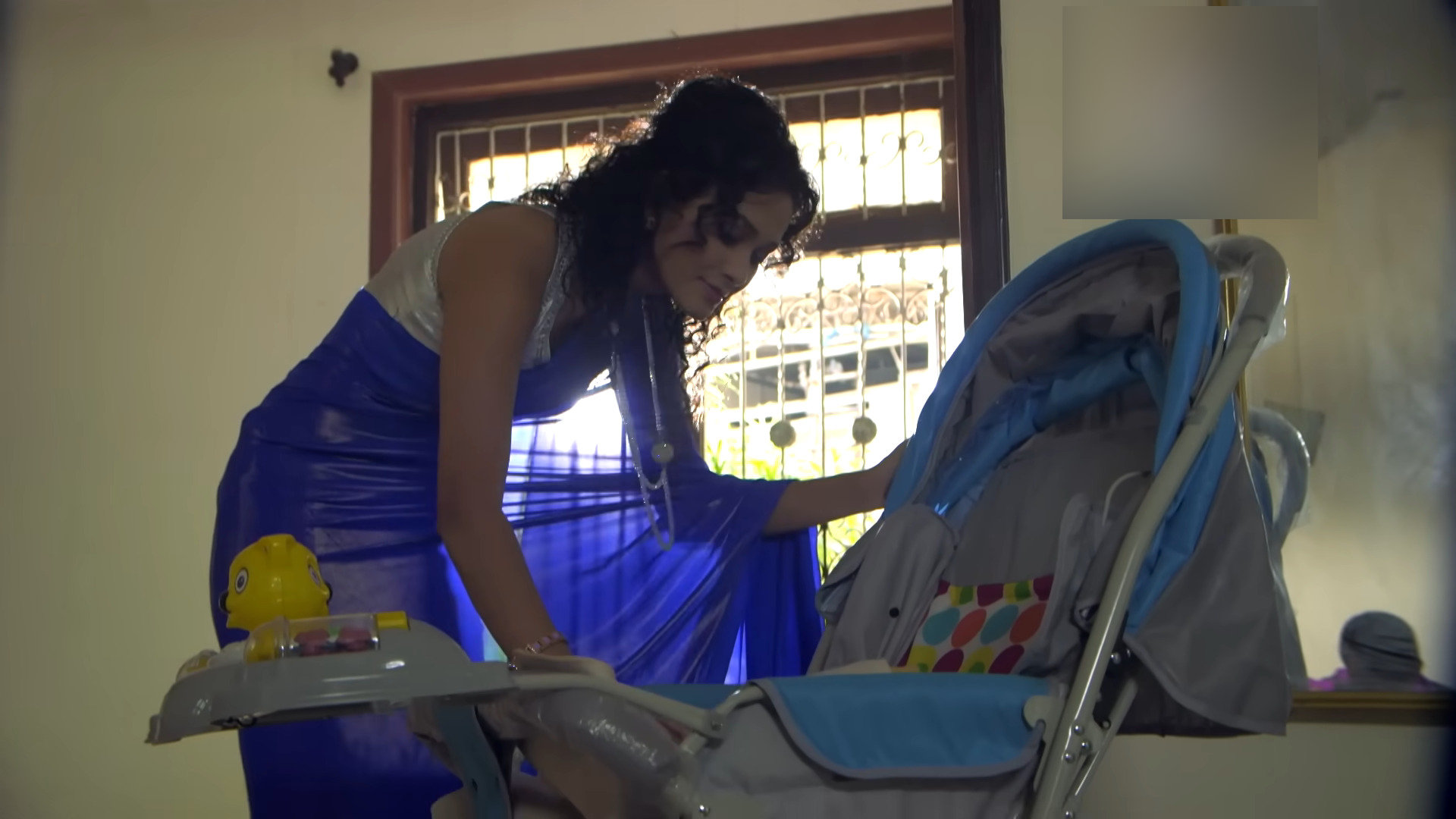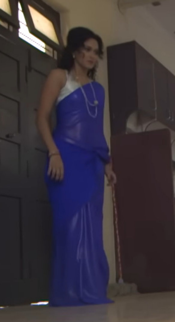 Blue satin saree