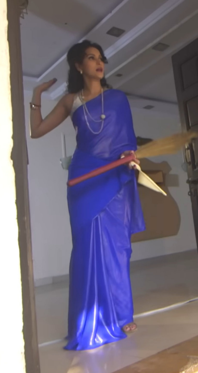 I like the boobs in satin saree