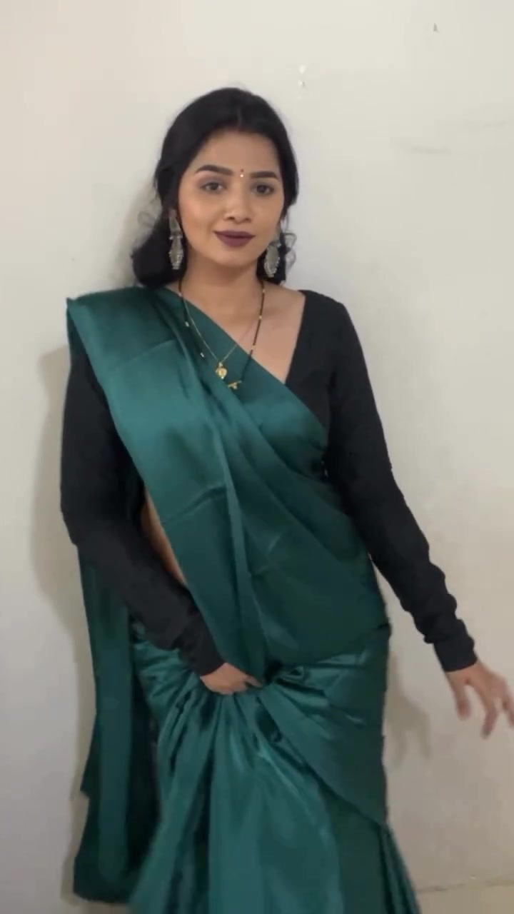 green satin saree