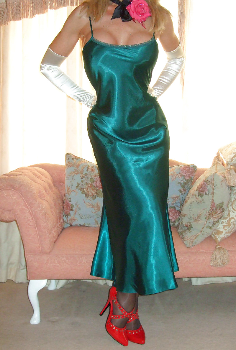 I have more pics of this lady in several satin dresses. If somedbody is interested I will post them