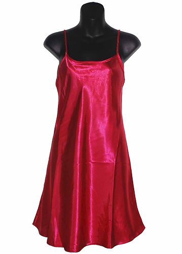 I got a deep purple satin chemise, and a red satin chemise, and a gorgeous long black satin dress.