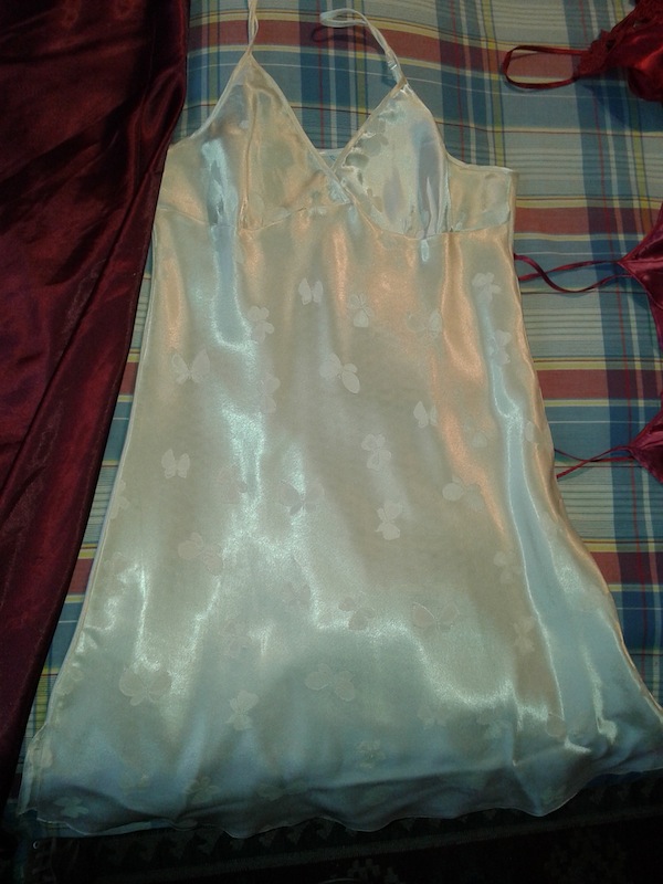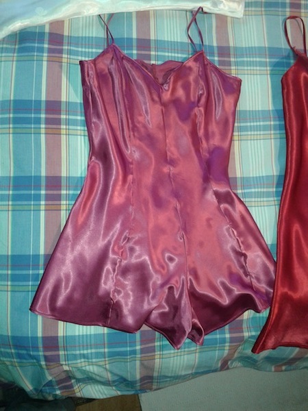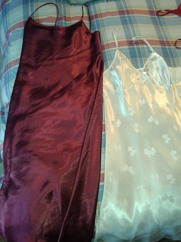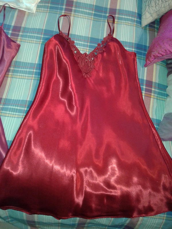 pink nightie is the 2n pic from last post and the black nightie is a pure silk satin nightie from a fans sister.