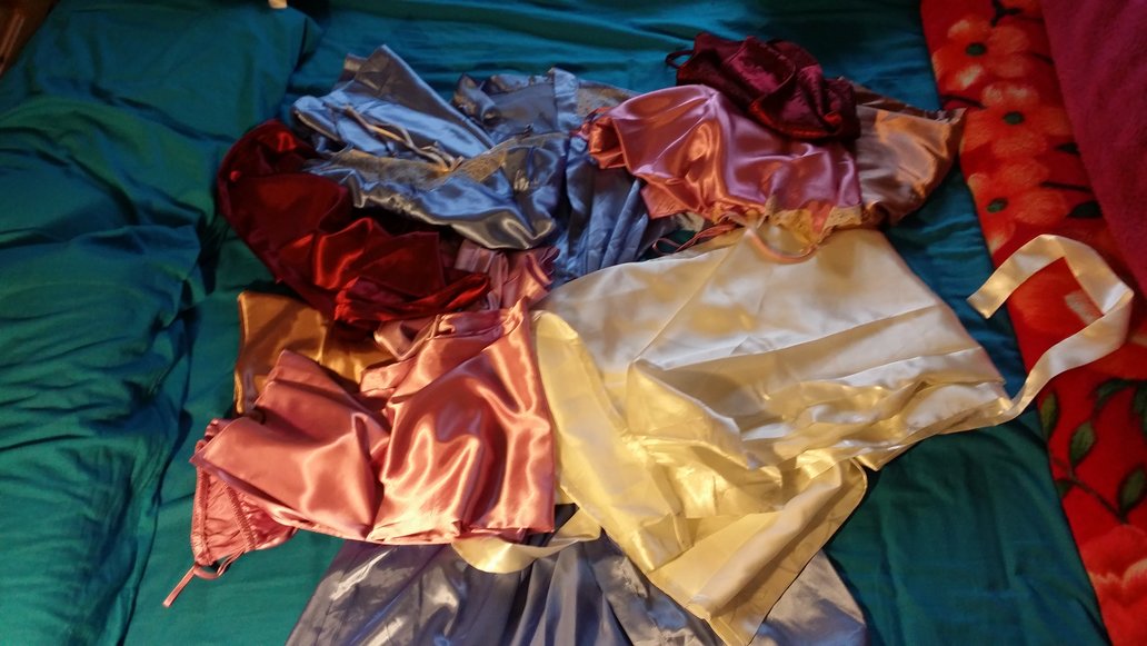 very nice satin outfits but I would be kinda paranoid why it was hidden out the way and never worn for you.