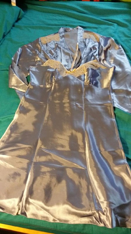 As i type this, i'm in a bit of shock...! Having lost some T-shirts in the house, i decided to have a good look round in the wardrobes to try and find them... imagine my shock, excitement and amazement as i open a box in the bottom of my wife's wardrobe to find it full of satin...! Robes... slips... pajarmas amongst other items... now... i'm a newcomer when it comes to satin so she must have worn them when we first met... back then i didn't "appreciate" satin... i even didn't think twice about the 2 satin wedding dresses she had hand made in The Philippines... Here are a few pictures of what i found....! I've never told my good wife about my fetish for satin.... i think we may have to have words now....! Utterly shocked (in a good way!) Mark