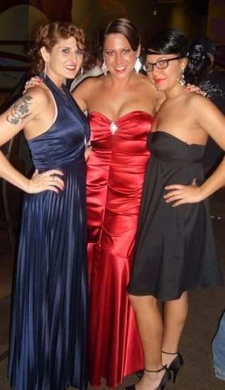 Girlfriend in satin dresses