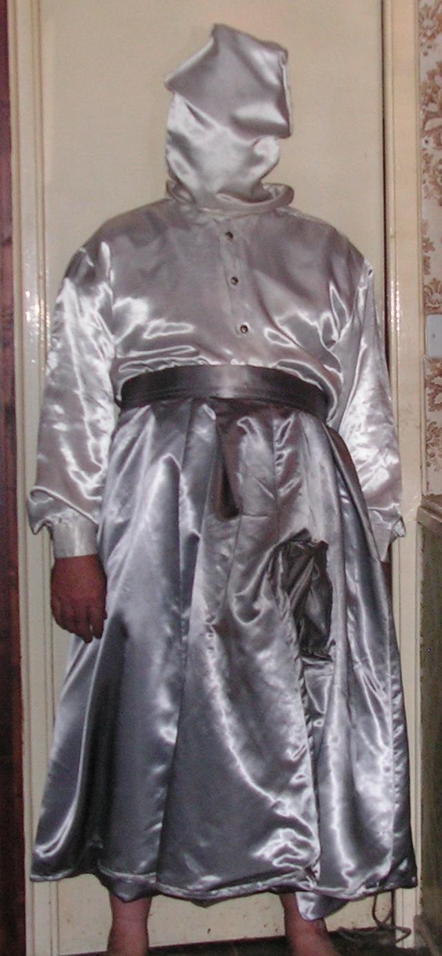 This is one of my best outfits, really good quality satin, skirt is double sided and under the blouse is a double sided slip, feels great the hood is double too.