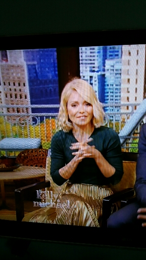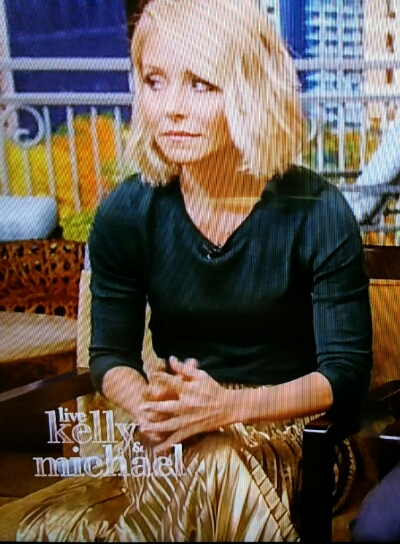 Kelly Ripa had a super shiny satin gold pleated skirt on today. The skirt was pure acetate satin. Such a hot plastic barbie doll.