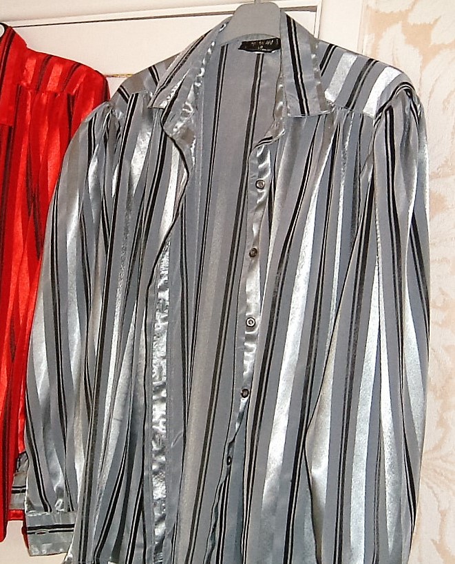 Hi all just thought I would share some old pictures of my wife's old late 80s & 90s satin blouses. I loved seeing her in them and she new I like seeing her wear them. She would sometimes come home from work have a bath and come downstairs just wearing a sexy satin blouse and panties and sit teasing me until I could not hold back any longer and would get it on and enjoyably but sadly ruin the blouse by getting it stained or ripped from her body but great times were had by all.