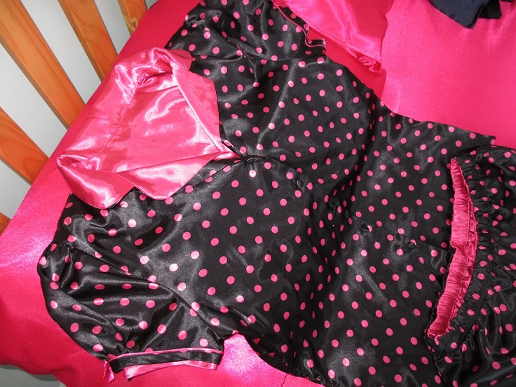 I have two pairs of satin pyjamas - one inside the other (and sewn together), so there is satin on both sides. There is also a convenient hole...