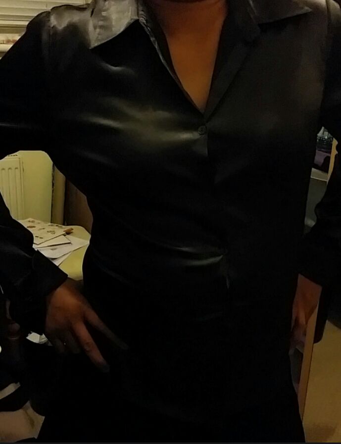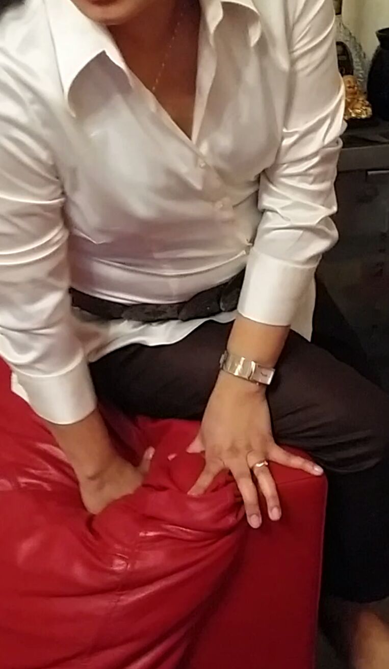 Here are a few cropped pictures from our satin blouse fetish sessions....