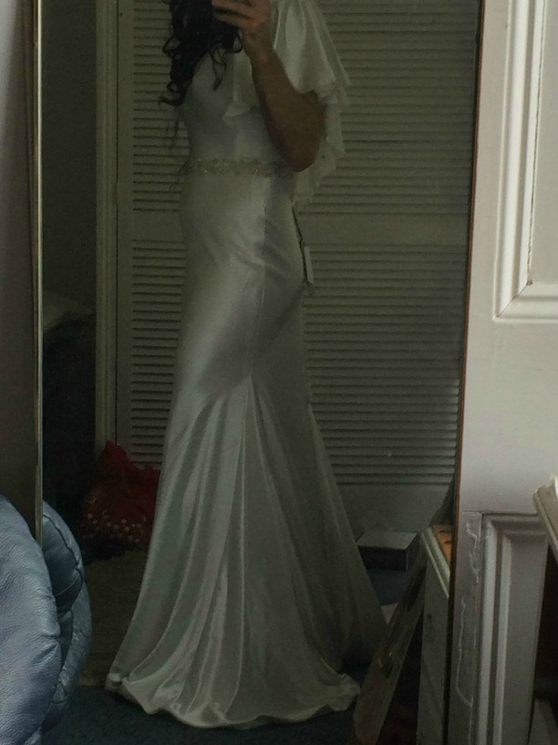 I'm still shaking. I have never owned or even worn a wedding dress before but always a dream to own one. They are always so expernsive. Somehow the satin Gods were shining on my today as I won this gown for £80! It's a desinger gown by Justin Alexander. I've researched it and it's well over £1,000 brand new. This one is a demo one from a Bridal shop that was only tryed on by some ladies.