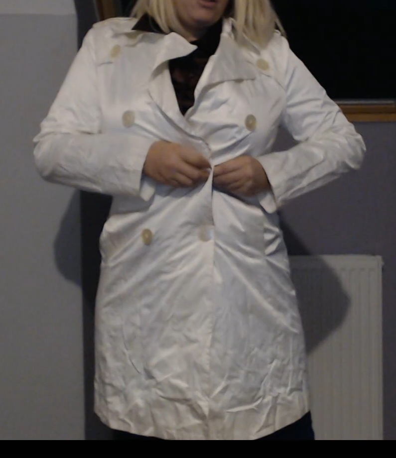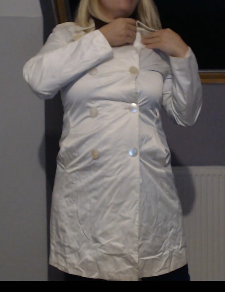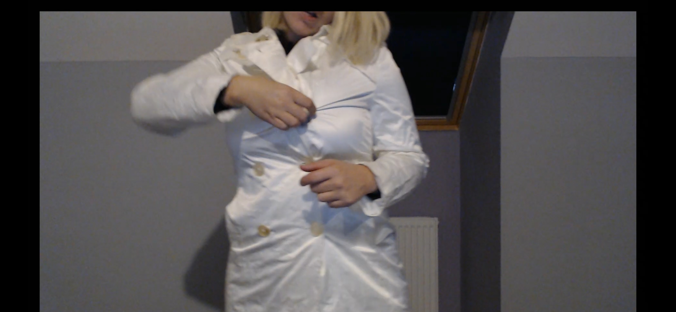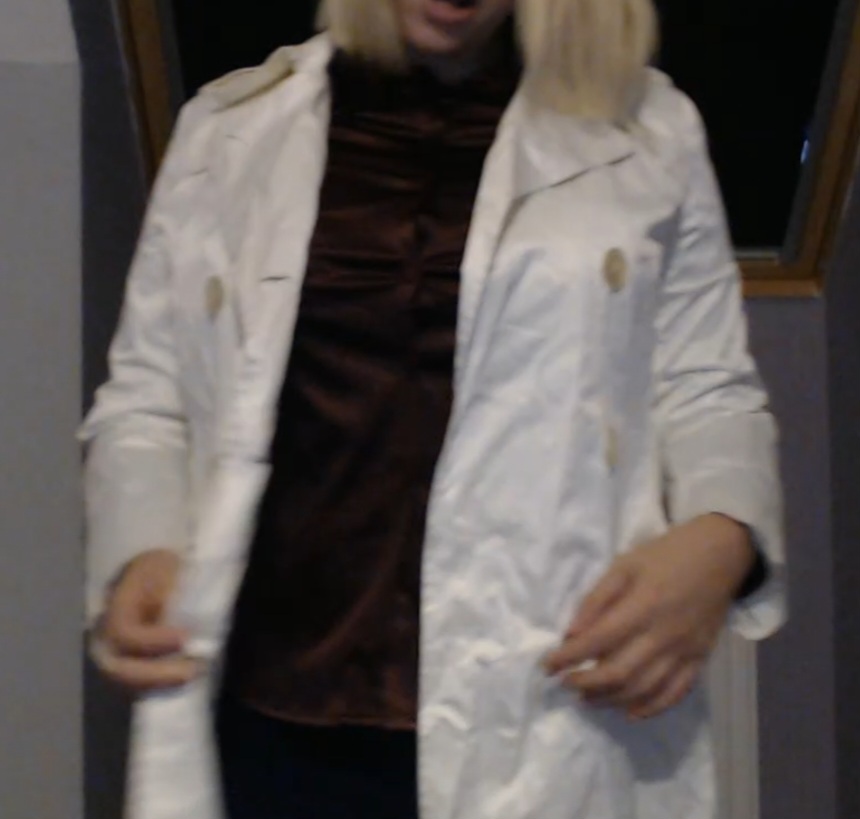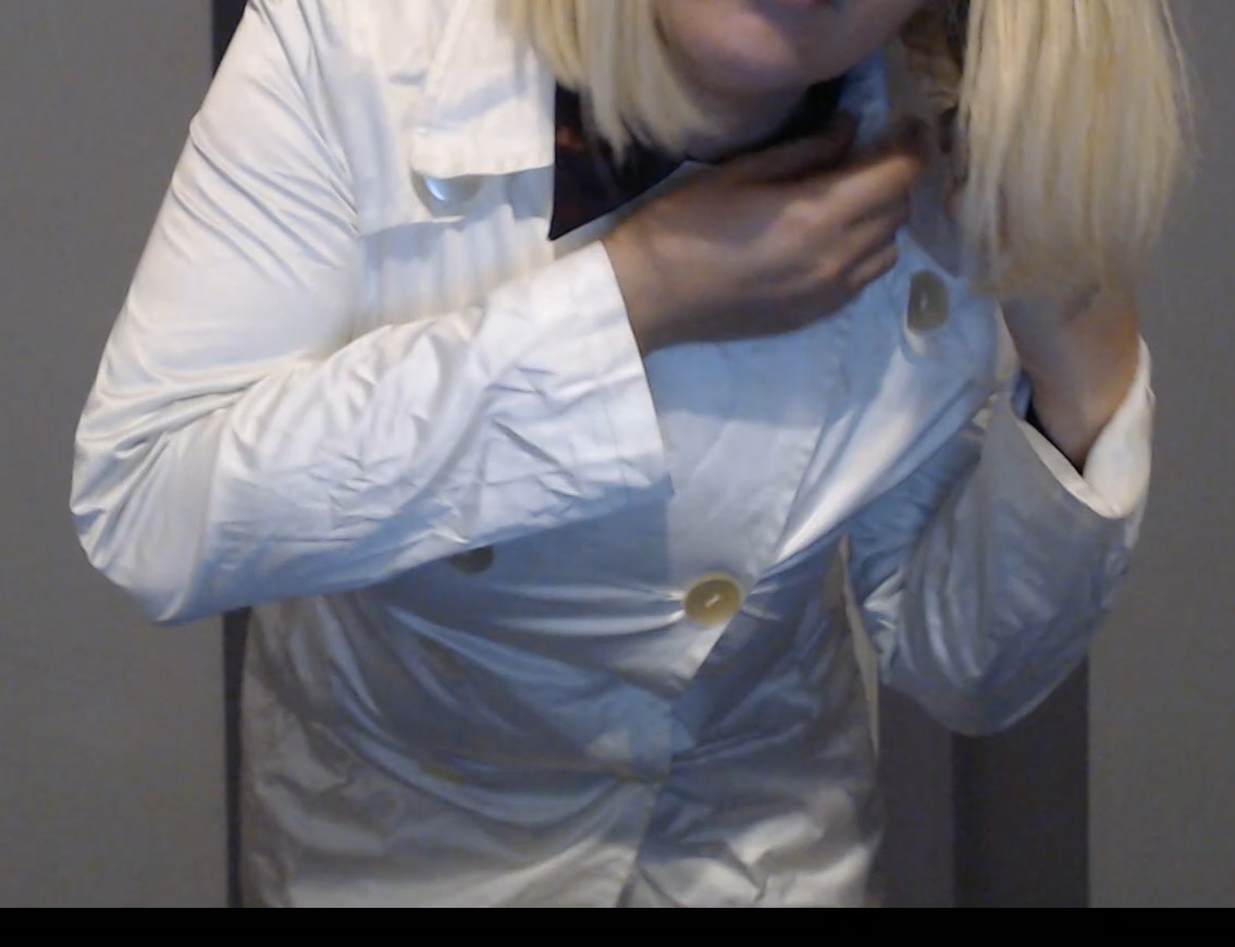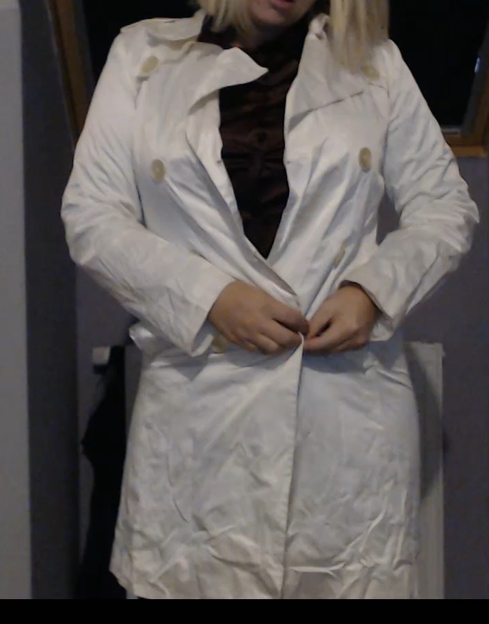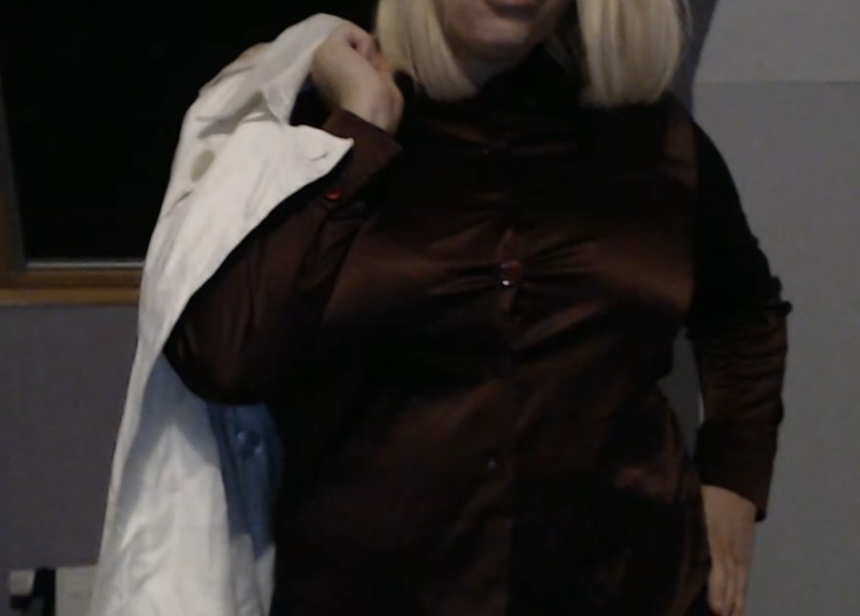 Ma belle mère qui repeinds son portail avec sa chemise bleu satin customise avec des boutons, très excitante