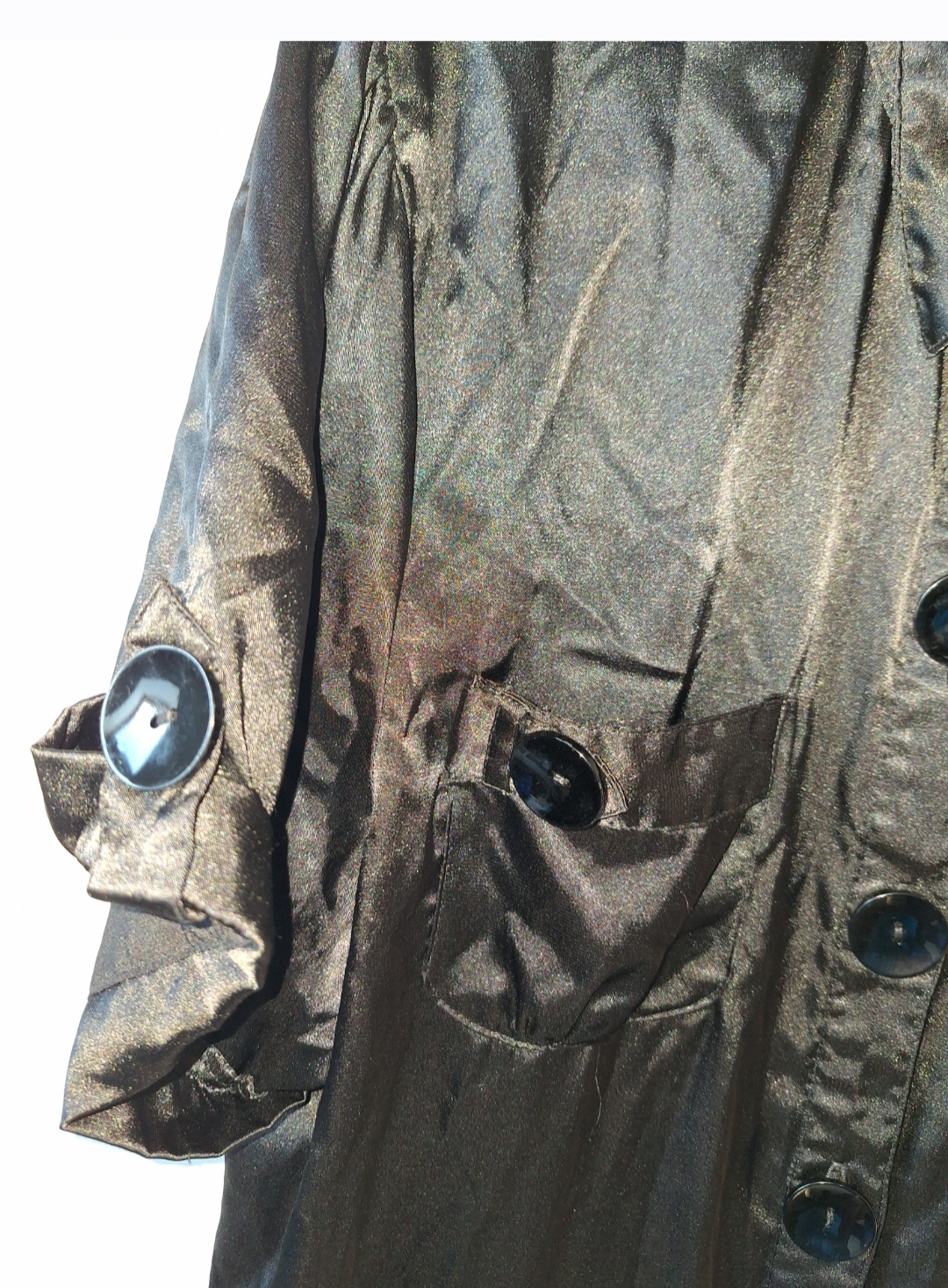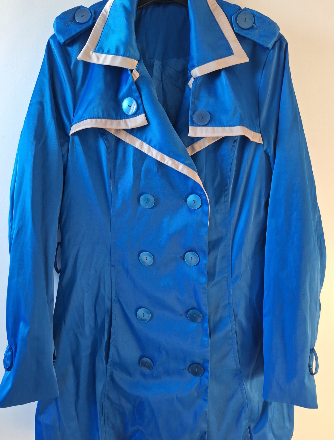 I play with his coat and its super blue satin lining, a little small for me, but very soft to wear, very exciting