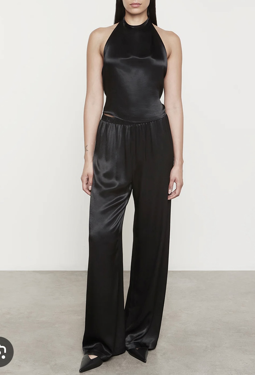 On the last day whilst waiting for our taxi in reception, a woman was walking to the spa and she was wearing a black shiny satin co-cord set, the trousers were wide legged and and the top was a sleeveless wrap and Jesus it was so shiny and sexy that I could feel my heart rush! The image below is the closest in resemblance and it doesn’t come close to how shiny and thick it was, I can only presume that it was a bespoke made piece or a high end silk fashion seller like lilysilk or silkysilk.
